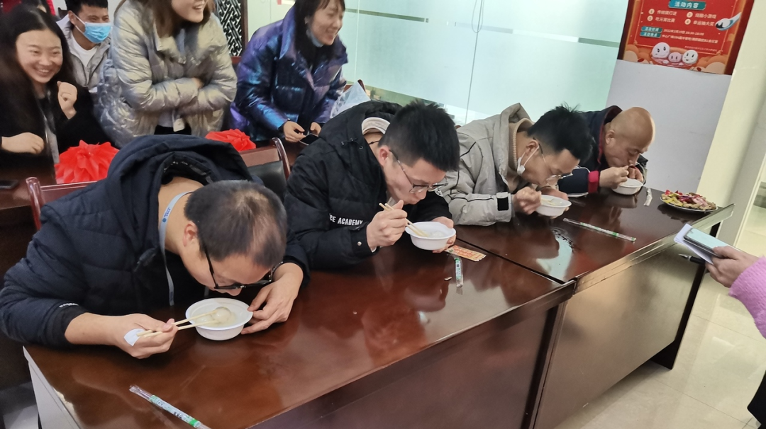 36道烧脑灯谜、香甜软糯的元宵、妙趣横生的游戏以及紧张刺激的幸运抽奖交替进行,尤其是以部门为单位的吃元宵比赛,更是将整场活动推向高潮。掌声、笑声、欢呼声、加油声不绝于耳。